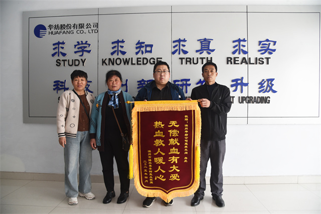 4月8日,服裝車間員工房虎收到了一面飽含深情的錦旗,上面寫著“無償獻(xiàn)血有大愛,熱血救人暖人心”。這面錦旗不僅是對(duì)房虎長(zhǎng)期堅(jiān)持無償獻(xiàn)血善舉的高度認(rèn)可,更彰顯了華紡人熱心公益、奉獻(xiàn)社會(huì)的精神風(fēng)貌。